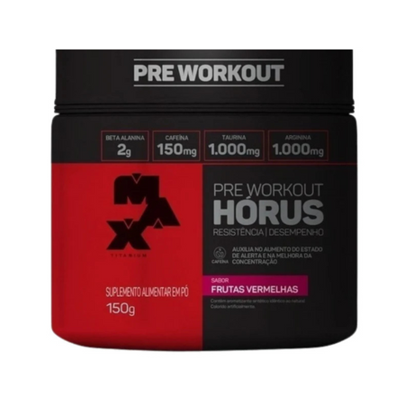 O Pré-Treino Hórus Max Titanium é um suplemento formulado para atletas e praticantes de atividades físicas que buscam mais energia, resistência e concentração mental, permitindo treinos mais longos e intensos. Sua composição inclui cafeína, beta-alanina, taurina e aminoácidos essenciais, promovendo explosão muscular, foco e aumento da performance.